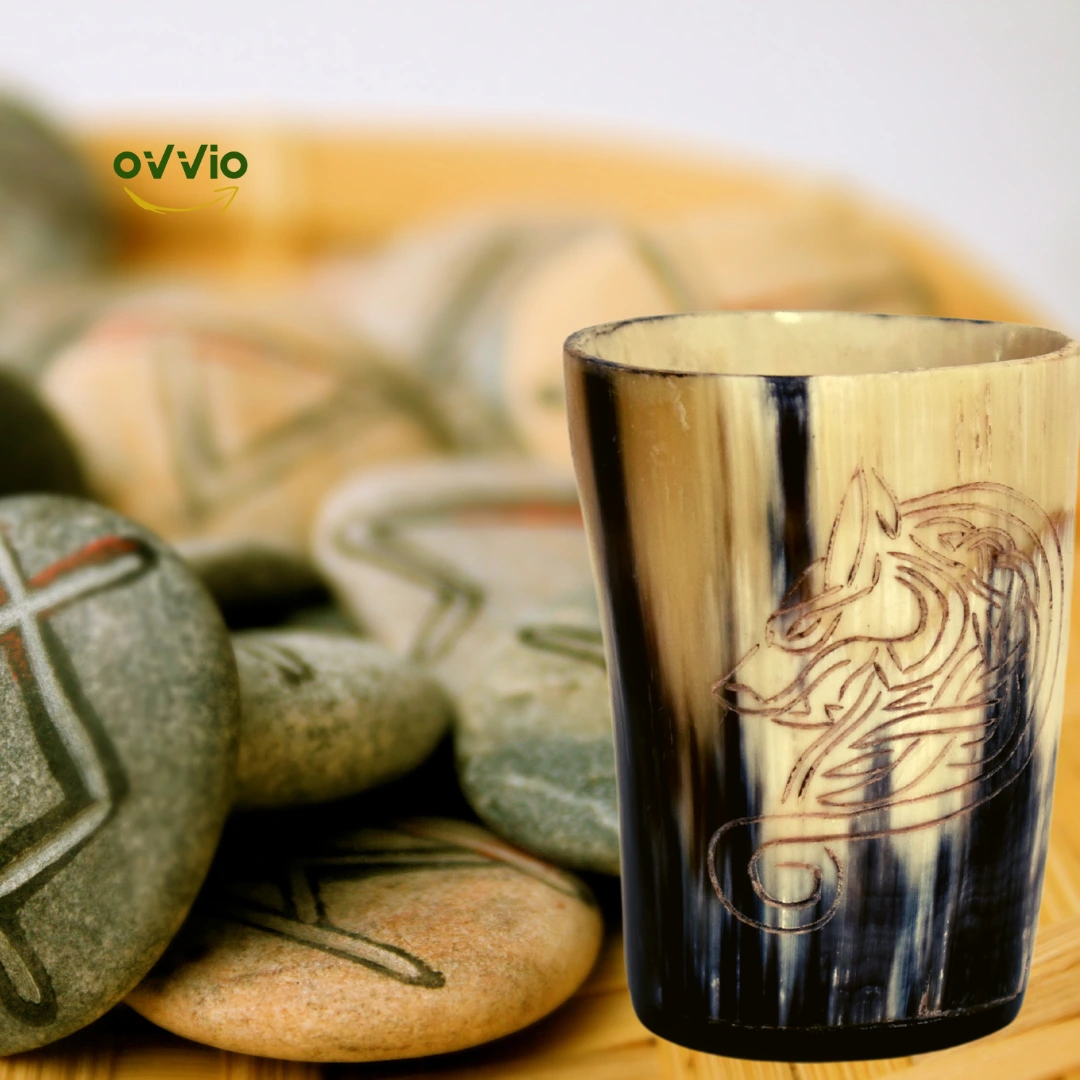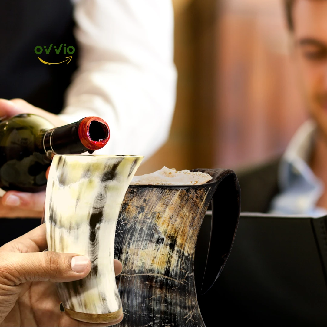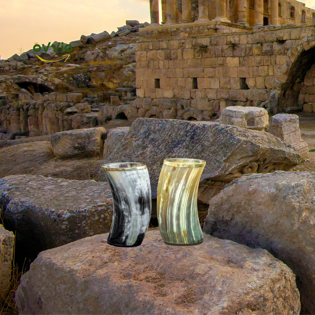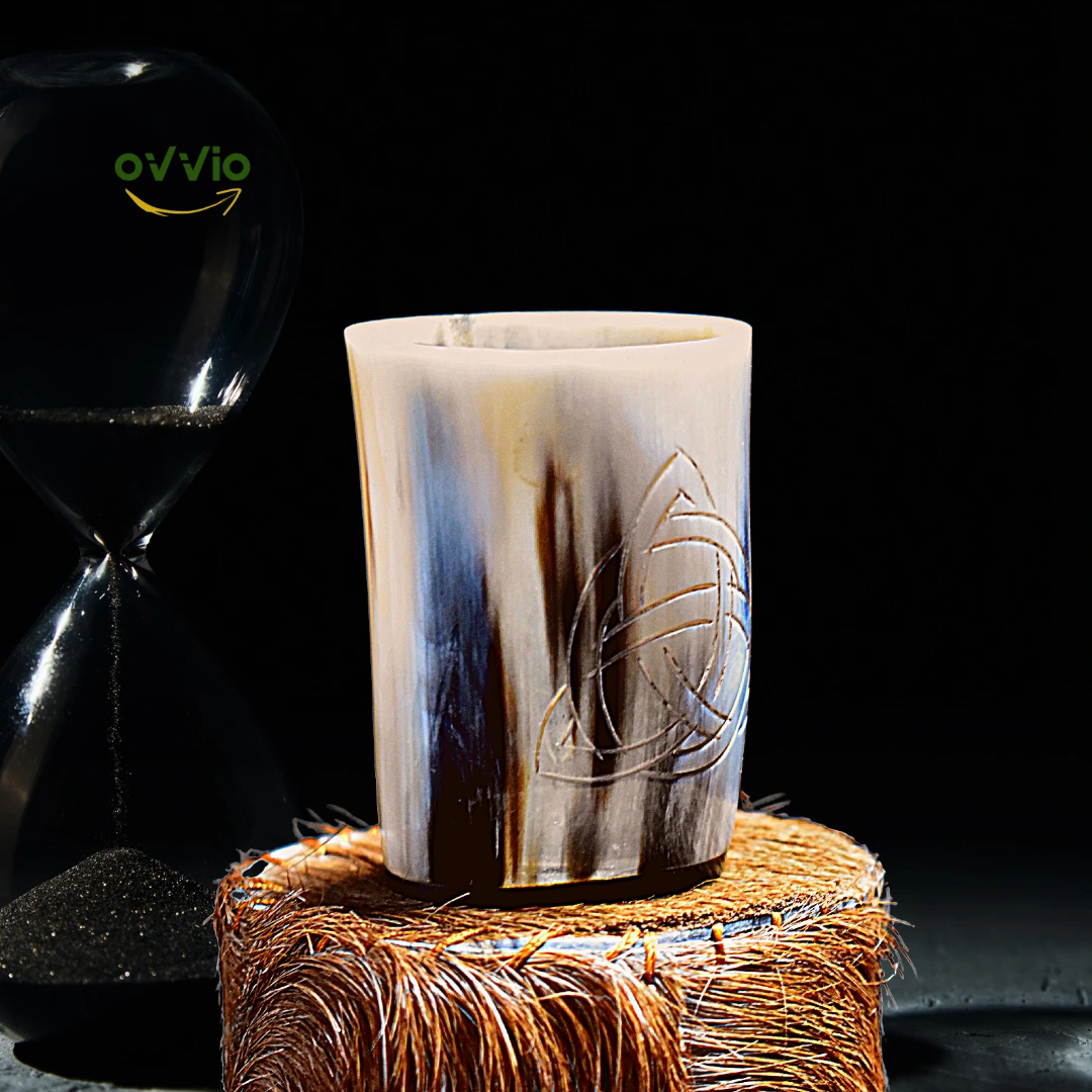 Set of Horn Glass Extra Large Size | Vodka Glass | Set Buffalo Horn Cup | Handmade Viking Style | Medieval Cup | Wood & Horn Base