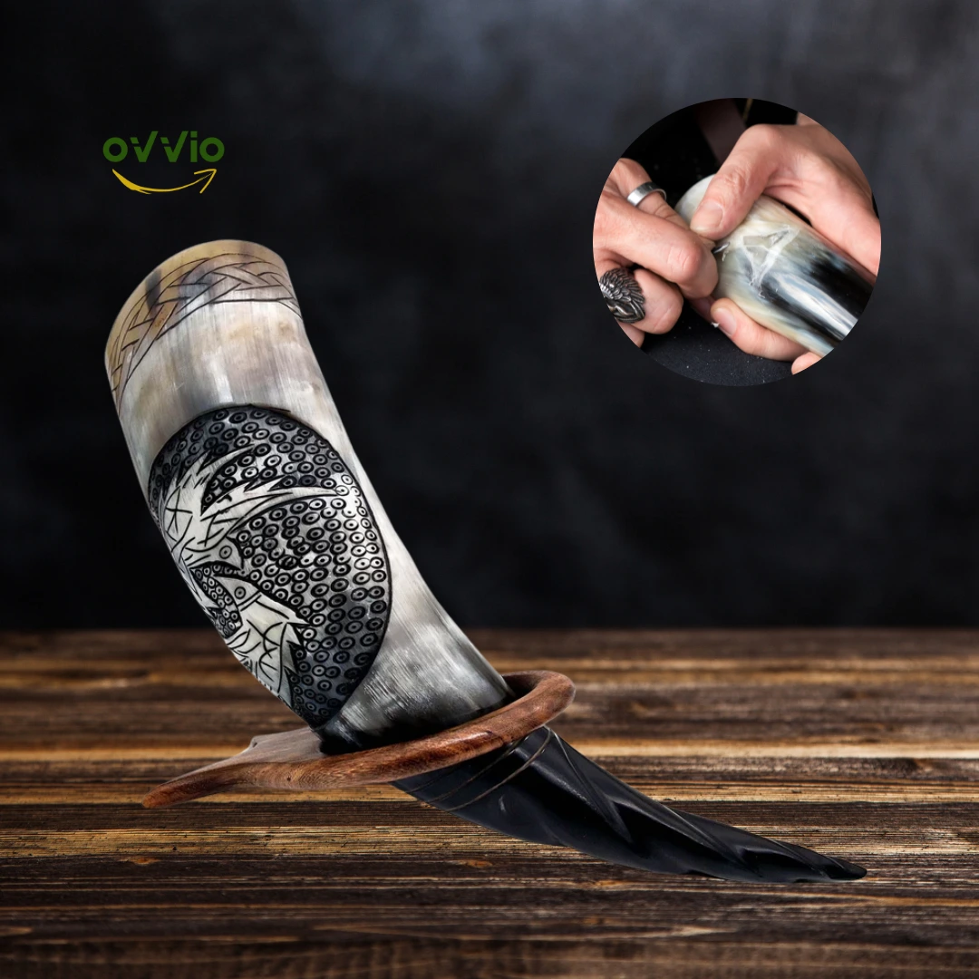 🍺 COMMITMENT TO IMPECCABLE QUALITY: From the rigorous selection of premium livestock for horn harvesting to meticulous quality checks, only the finest horns are used to craft these extraordinary pieces. Enhanced with high-quality wooden or iron stands and secured with food-safe epoxy, the horn’s interior is carefully coated with food-safe lacquer, meeting the highest standards of safety and quality.