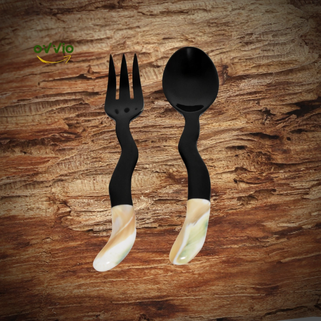 🥄 Exquisite Aesthetics: The amalgamation of black and white tones mingled with warmer shades of brown creates a visually striking product that stands out uniquely. Each of these natural horn spoons undergoes an intricate hand-carving process on a lathe, followed by shaping and molding at high temperatures, ensuring a comfortable grip tailored to fit your hand seamlessly.