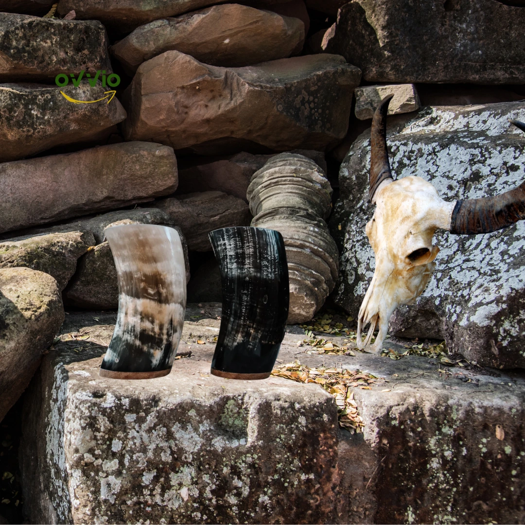 🍸 CHOOSE YOUR DISTINCT STYLE: The Extra Large Size Set of Horn Glass features a fusion of wood and horn in its base, echoing the medieval elegance of the era. Revel in the diversity of horn size and color that accentuates the uniqueness of each 100% natural piece in this exclusive set.