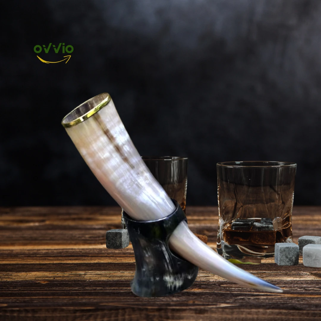 Viking Drinking Horn Brass With Horn Stand | Drinking Vessel | Handmade Beer Cup | Horn Mug Drinking Tankard | Wooden Stand | Iron Stand